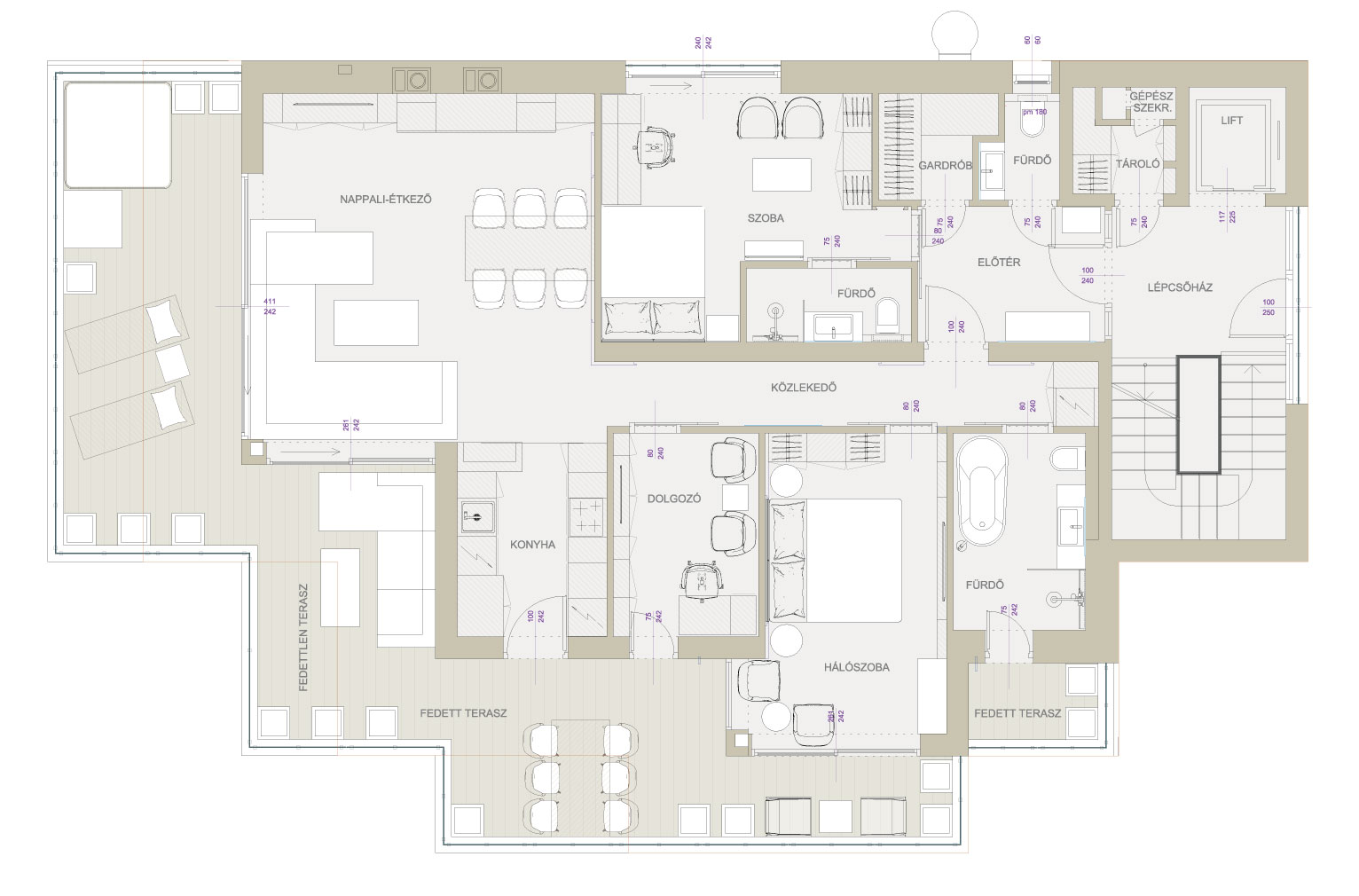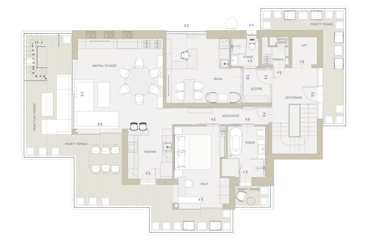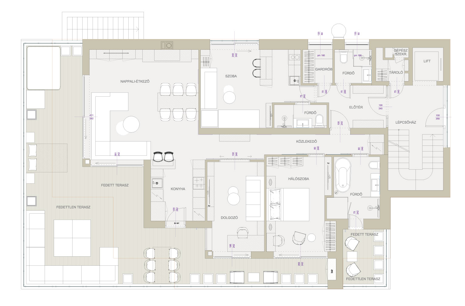 Lakás alapterülete: 126m2 + 23m2 terasz + 107m2 tetőterasz