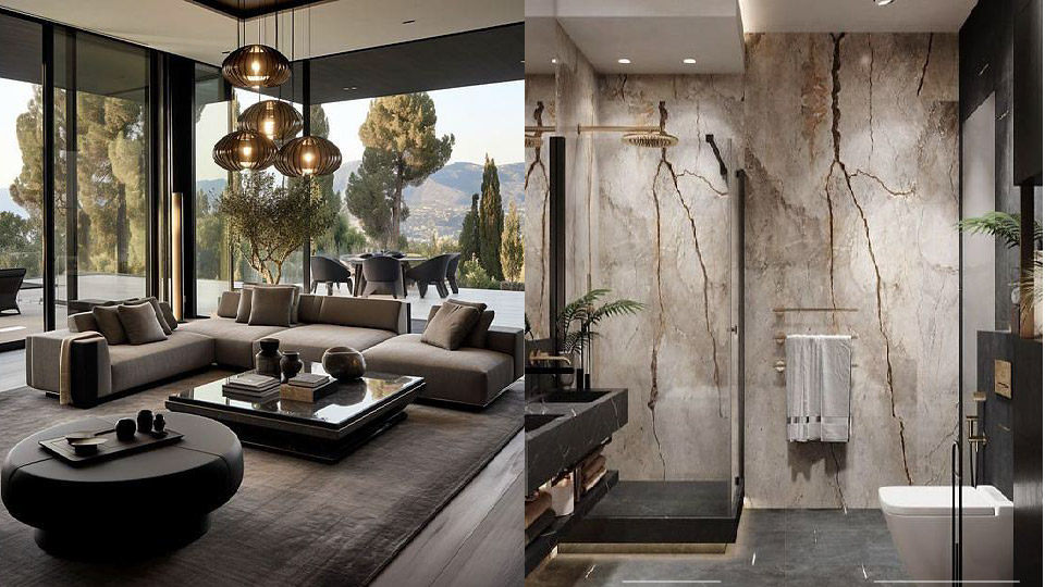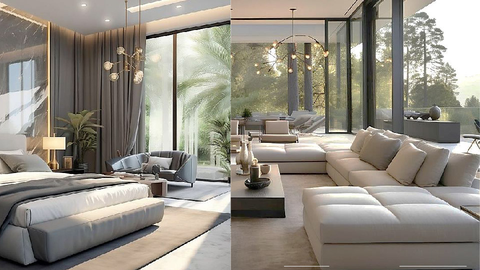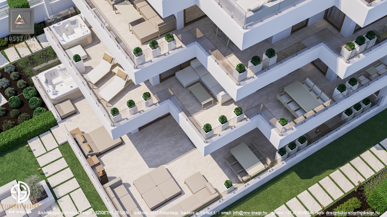 A lakás 3D képei illusztrációk a választható bútorok és burkolatok bemutatásával készültek.