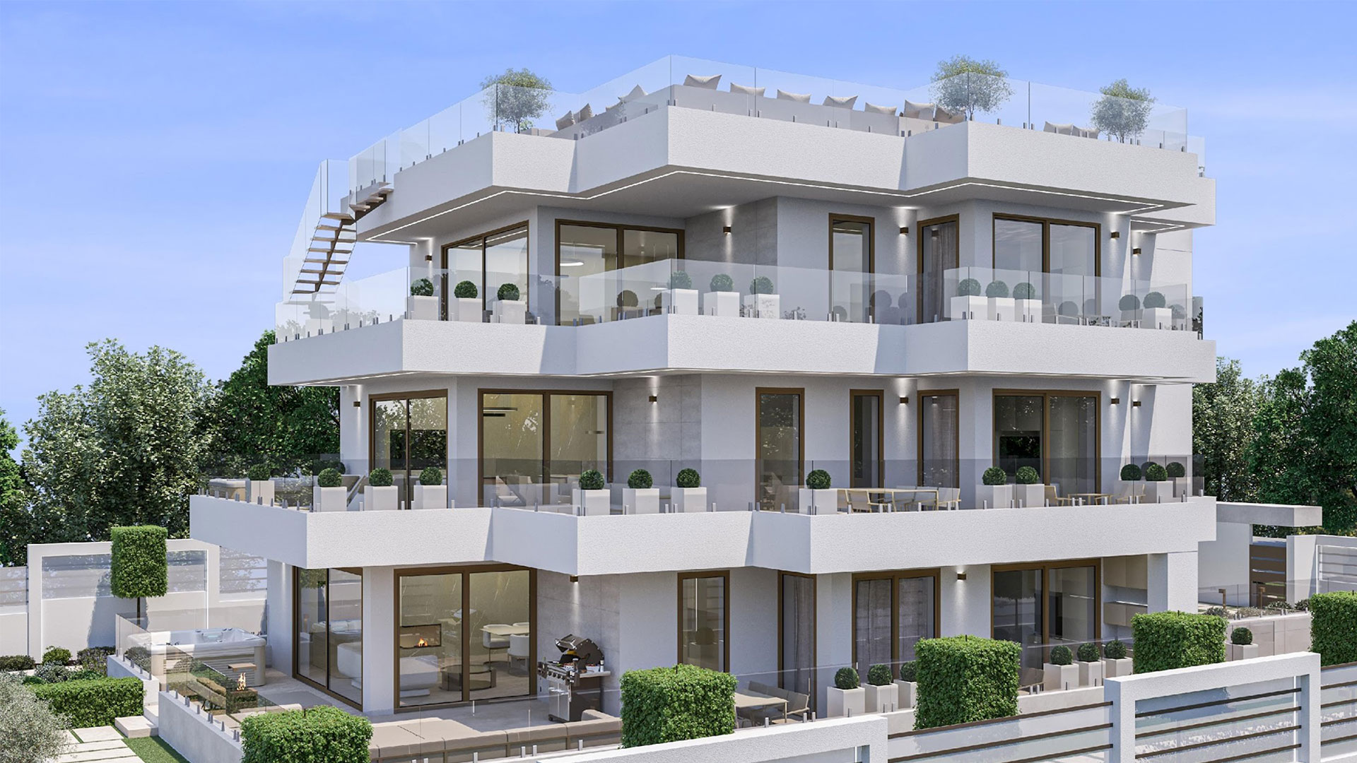 Ez a Nappali + 3 szobás egyedülálló adottságokkal rendelkező nagyteraszos, kertkapcsolatos luxus lakás kiváló térkapcsolatokkal rendelkezik. A lakás lakóterei kinyúlnak a lakást délkelettől délnyugatig körbe ölelő nagyméretű teraszra és a kapcsolódó nagyméretű lakókertbe tökéletes harmóniába vezetve át a beltéri lakófunkciókat a lakáshoz szervesen kapcsolódó külső terekbe.