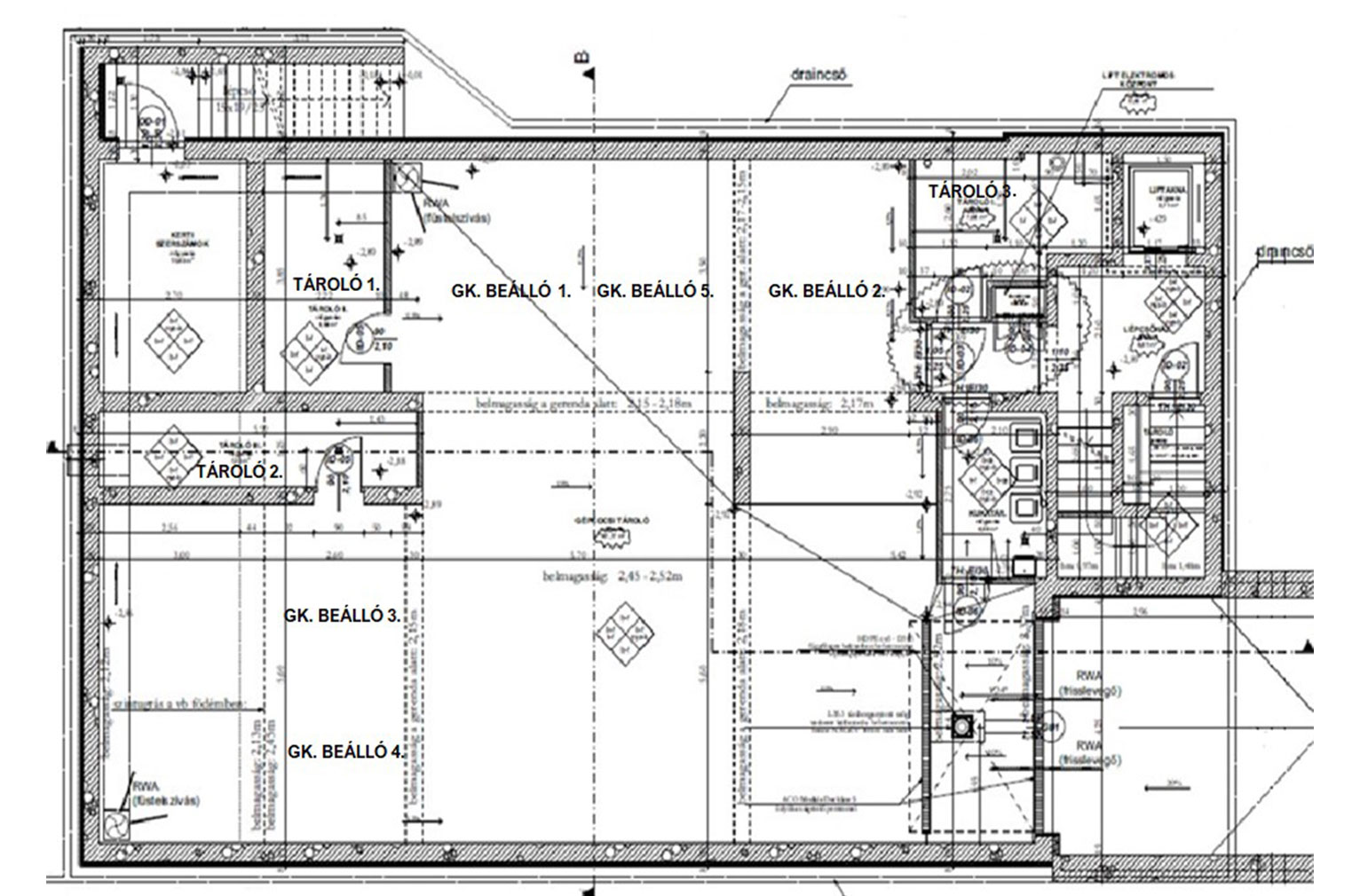 2. a teremgarázsban: 15.40m2